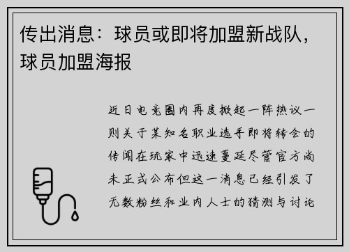 传出消息:球员或即将加盟新战队,球员加盟海报
